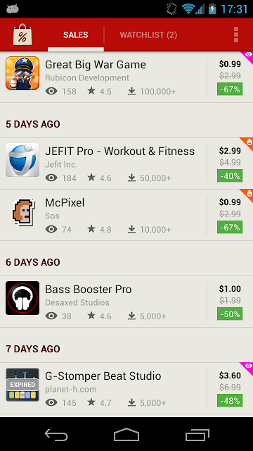 Aplikacija, ki dnevno opozarja na znižanje najboljših aplikacij in iger (do -100%). Lahko pa si sami nastavite opozorilo za določeno aplikacijo, ob znižanju le te, boste obveščeni.