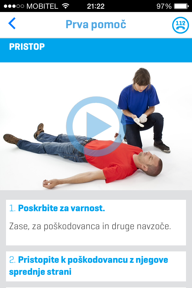 Mobilna zbirka navodil (tudi slike in videoposnetki) za nudenje prve pomoči v slovenskem jeziku. Nesreča nikoli ne počiva!