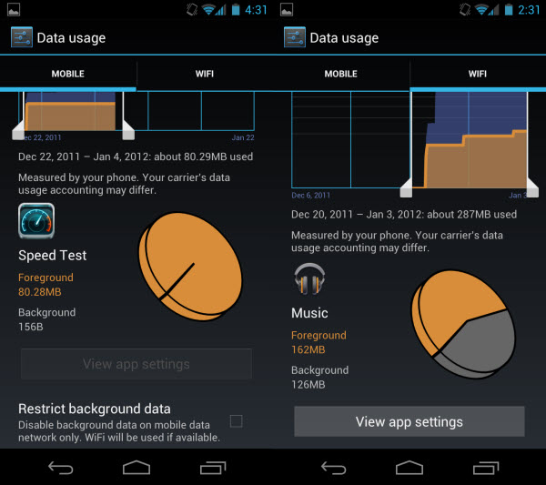 Prva past na katero lahko naleti uporabnik Androida je posodabljanje sistema preko mobilne povezave. Android namreč v svojih nastavitvah ponuja avtomatsko posodabljanje sistema. Ker so glavne posodobitve relativno velike, je ta funkcija priporočljiva zgolj, če uporabljate katerega od neomejenih paketov. Tu je mnogo bolj priporočljivo uporabljati drugo funkcijo “avtomatska posodobitev preko Wi-FI povezave”, kar bo zagotovilo, da bo vaš telefon posodobitve prenašal zgolj, ko boste povezani na brezžično povezavo.