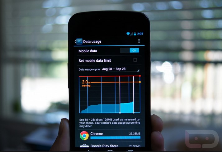 Če pa želite nastaviti omejitev koliko podatkov lahko prenese vaš mobilni telefon v enem mesecu, ter prejemati opozorila, ko se limitu približujete, pa lahko to storite v nastavitvah. V nastavitvah namreč lahko najdete okence “Data Usage” kjer lahko po želji prilagodite količino porabljenih podatkov glede na vaš zaklupljeni paket. Tako boste najprej prejeli opozorilo, da se približujete prednastavljeni omejitvi, ko pa boste to dosegli, bo telefon preprosto blokiral internet povezavo. Tako je nemogoče porabiti večjo količino podatkov, kot jo imate zakupljeno.