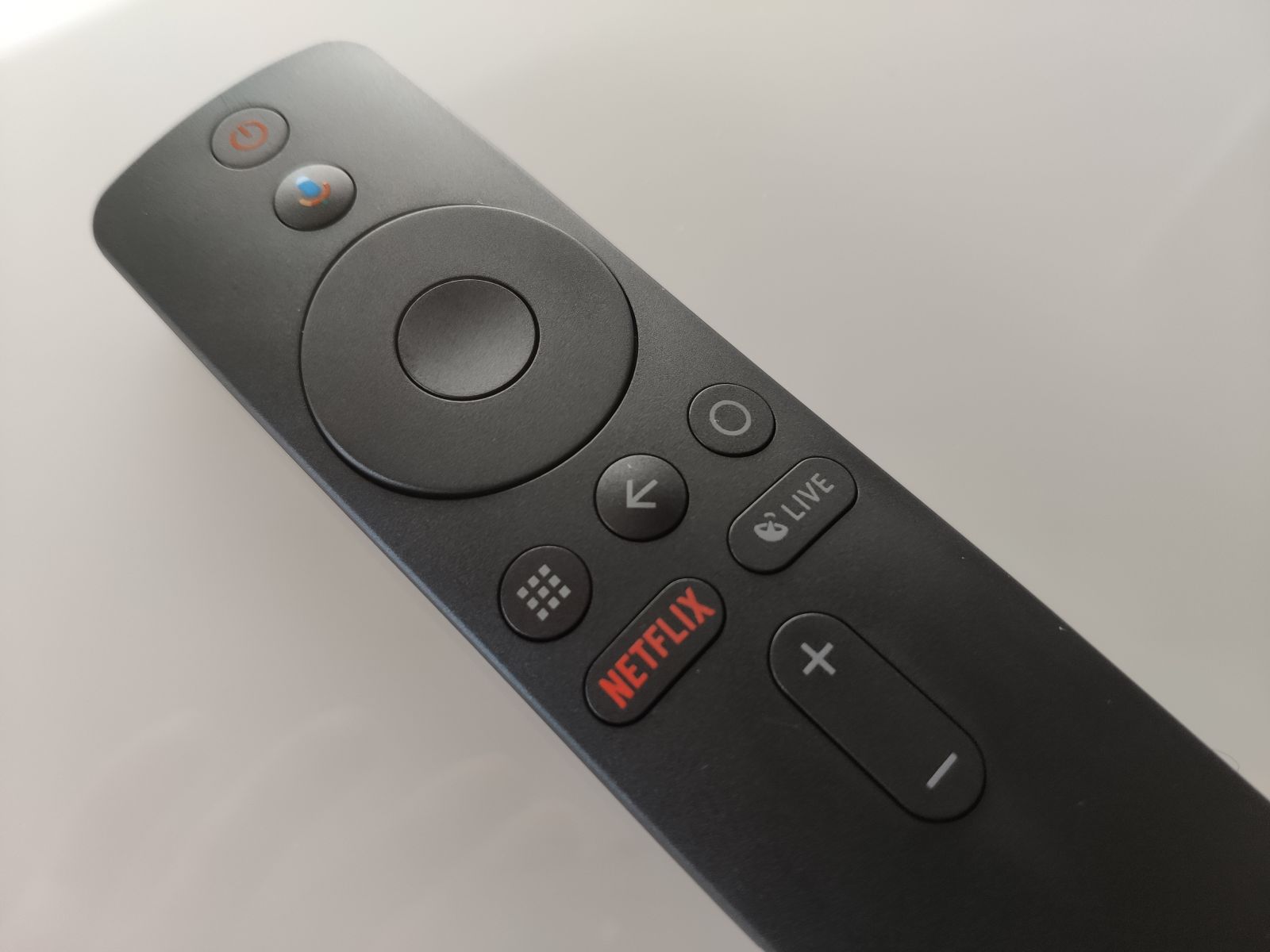 Ob pogledu na daljinski upravljalec opazimo največ napredka v primerjavi z njegovim predhodnikom, sploh v dizajnu, ki deluje precej premium, tudi občutek v roki je odličen, ni premajhen ali prevelik, ravno pravšnji. Daljinec je tudi veliko bolj uporaben kot pri predhodniku in najbolj očitna razlika sta tipki »Netflix« in »Live«, ki omogočata hiter dostop do Netflixa oziroma TVja v živo. Tipka »mic« je premaknjena na bolj središčen in pomemben prostor zaradi poudarka na Google Assistantu, glasovnega upravljanja. Gumb za vklop/ izklop naprave najdemo povsem na vrhu, nad tipko mic.