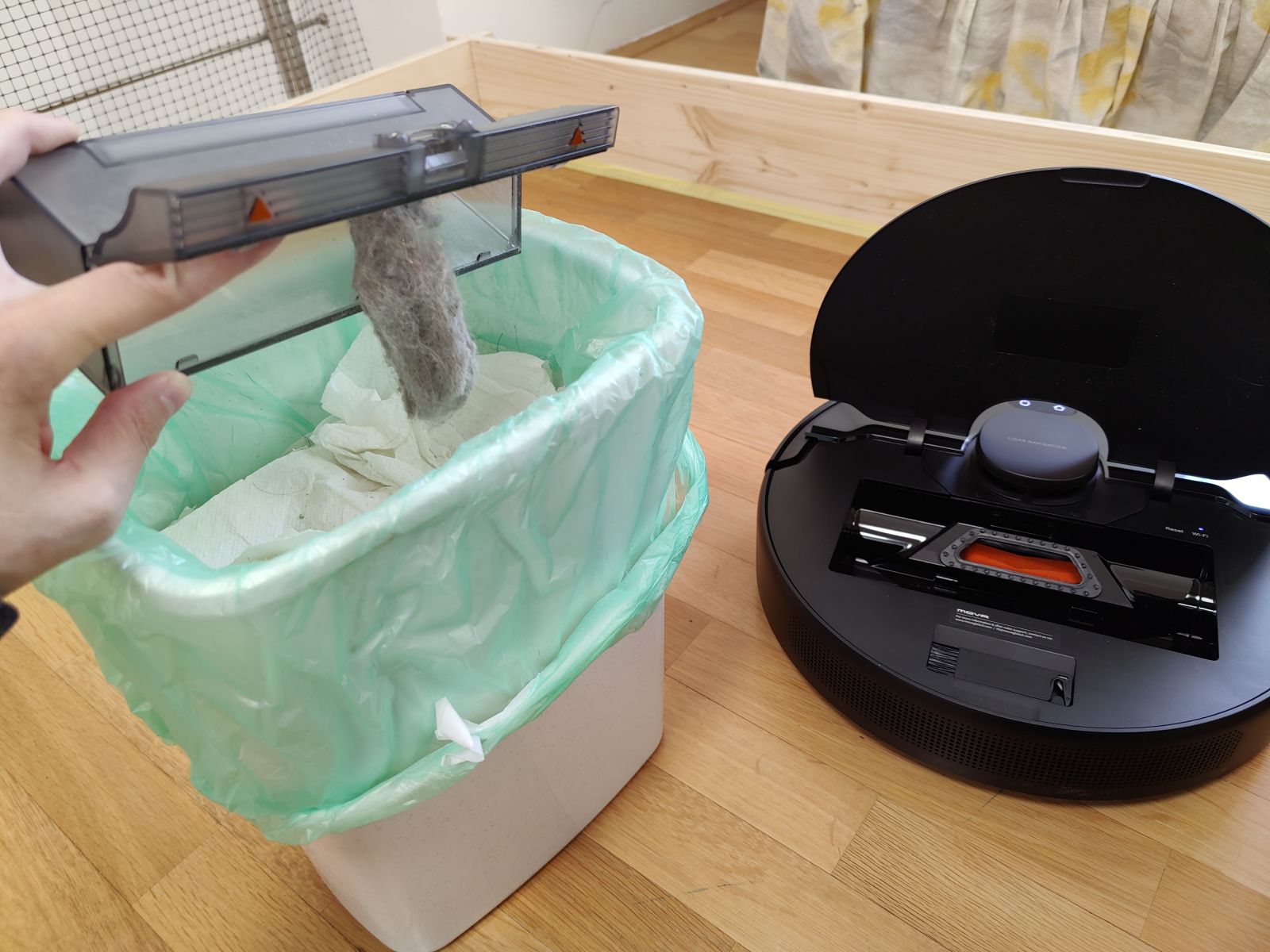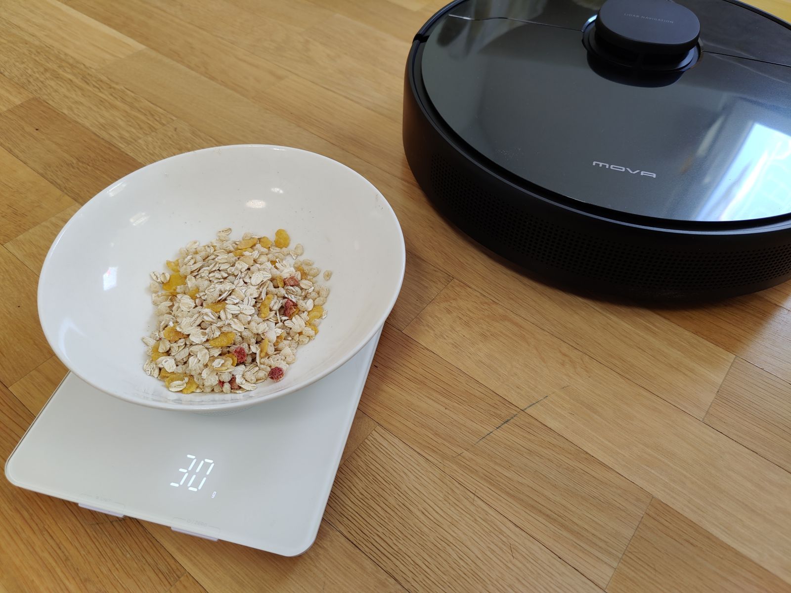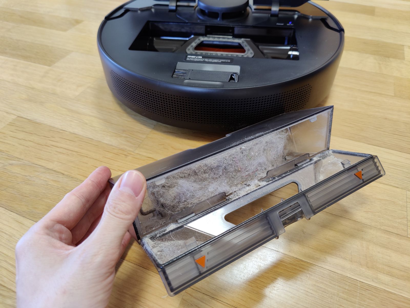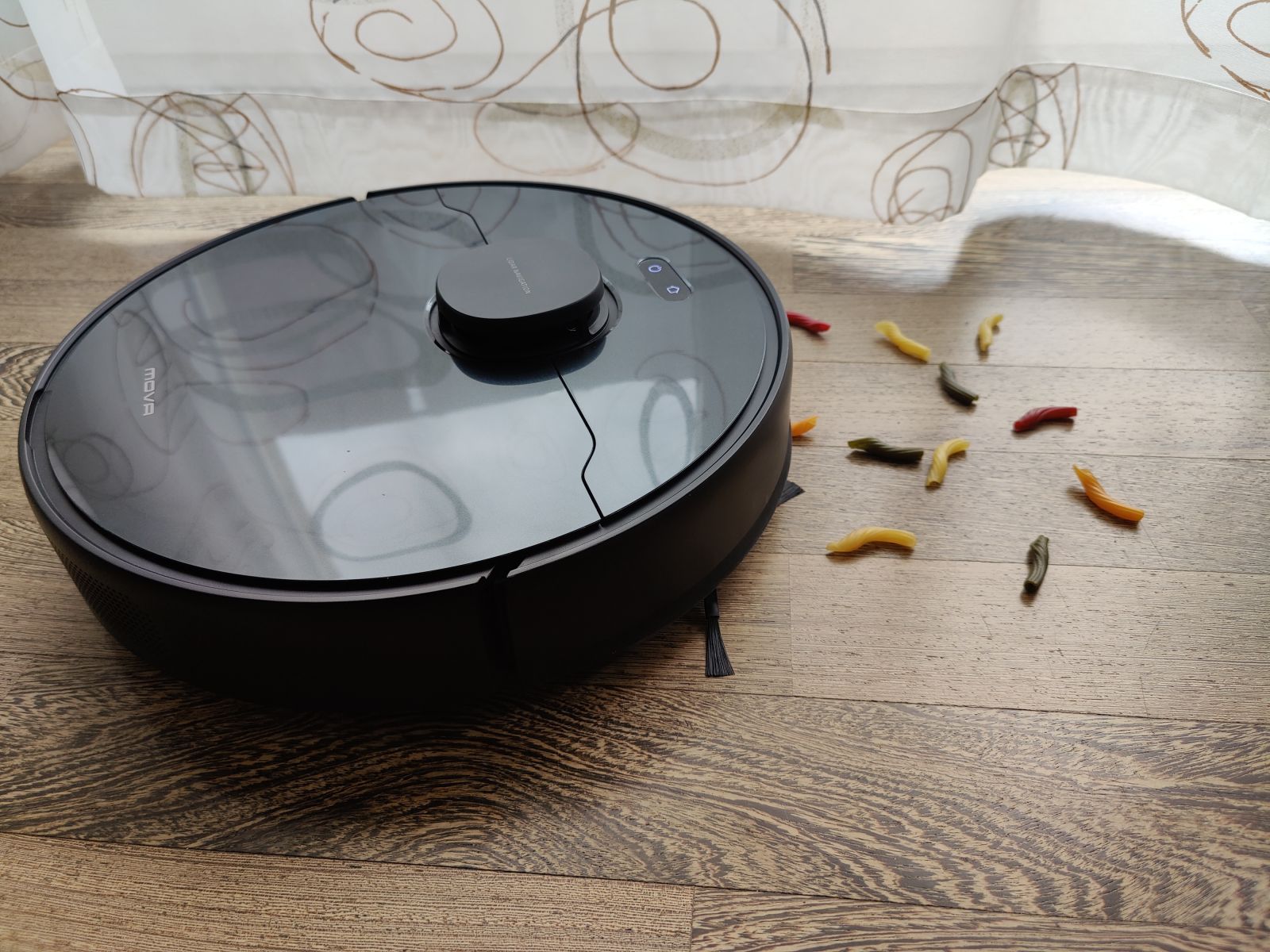 Robotski sesalnik Mova L600 smo preizkusili še s testom mokrega čiščenja na gladki površini, kjer smo na tla nanesli močnejšo mešanico kave in počakali 10min, da se madeži delno posušijo. Tudi na tem področju nas je Mova presenetila, saj je s tal počistila skoraj vso umazanijo, malenkostno poznalo se je le proti koncu, ko je bila že krpica zelo umazana od kavnih usedlin, tako smo ob vsem čiščenju opazili res le rahel majhen pas, kjer zaradi umazane krpice učinkovitost več ni bila 100%, a očesu komaj vidno, na videu se praktično ne vidi, kar pa bo sicer težava prav vseh modelov robotskih sesalnikov. Jasno, še bolj trdovratnejši in bolj zasušeni madeži bi bili večji zalogaj, a pri testu mokrega čiščenja izhajamo iz še realnih situacij, saj se hudih razlitij in izjemno trdovratnih madežev z robotskim sesalnikom ne bomo lotili. Še eno področje torej, kjer smo bili pozitivno presenečeni.