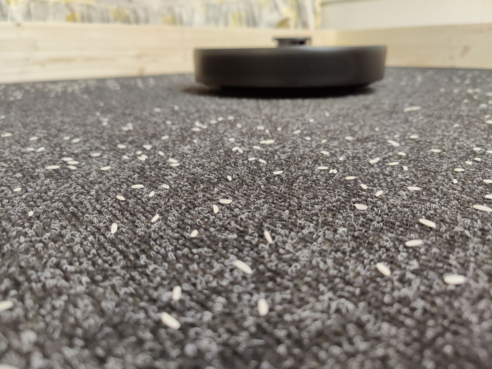 V treh poizkusih je v povprečju od 20g riža namreč pobrala s preproge vseh 20g od 20g, včasih se je kakšno zrnje zataknilo v HEPA filtru, zato na tehtnici 19g, na preprogi pa je ostalo le zrnce, dve ali tri riža (ne bomo torej potrdili 100% kljub teži, a bilo je zelo blizu, kar pomeni fenomenalno 99% učinkovitost na preprogah, kjer pa je zopet čas predstavljal svoj dejavnik, čiščenje je zaradi dvojnega čiščenja vzelo 4min namesto 2min, a na koncu koncev, pomembni so rezultati in le ti govorijo sami zase, gre za izjemno učinkovit model z res odličnim algoritmom čiščenja.