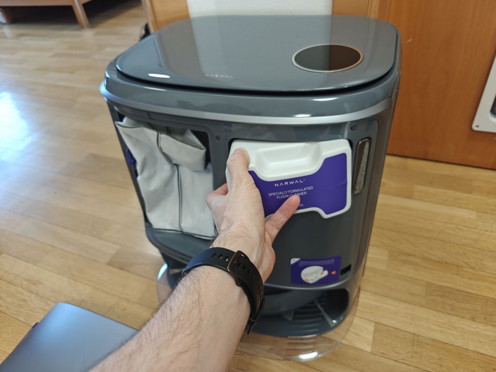 Na strani negativnih plati sesalnika pa bi kot prvo omenil področje, kjer tudi lanski model ni bil učinkovit, poraba vode namreč. Narwal Z10 Ultra je res izjemen na področju mokrega čiščenja, a poraba vode je bistveno višja kot pri konkurenčnih modelih. Za 80m očiščenih neto površin (150m2 bruto površin) bo pri maksimalnem mokrenju namreč porabil celotno posodico čiste vode (4.5L) kar je 2-3x več kot konkurenčni modeli. Jasno, nivo mokrenja lahko znižamo in ne bo dan in noč razlike pri učinkovitosti čiščenja, kar je dobro, a dejstvo ostaja, da je pri maksimalnem mokrenju precej potraten in imam občutek, da gre največ vode pri čiščenju krpic v samčistilni postaji, kar pomeni da z nastavitvijo nivoja mokrenja ne bomo drastično vplivali na porabo vode. Iz stališča uporabniške izkušnje nekoliko zmoti dejstvo, da moramo prostor najprej zmapirati in nimamo opcije mapiranja in čiščenja hkrati, res pa je da mapiranje celotnega prosta poteka precej hitro, vzame zgolj nekaj minut. Nekoliko zmotid, da uporabnik pri dodatni, sekundarni in tretji in četrti mapi, kjer nimamo samočistilne postaje, nimamo na voljo vseh možnosti čiščenja, pa ne samo tistih povezanih s samočistilno postajo ampak tudi podrobnejših ročnih nastavitev intenzitete čiščenja pri sesalniku. Ker sesslnik nima vgrajene posodice za vodo, se na postajo vrača malo pogosteje kot konkurenčni modeli, kar pomeni tudi malo daljši čas celotnega čiščenja, a pri konkurenčnih modelih z vgrajeno posodico za vodo lahko nastavimo daljše intervale samočiščenja oz. po želji da se ne vračajo na samočiščenje med čiščenjem stanovanja … Avtomatsko doziranja detergenta za čiščenje je velika dodana vrednost, a Narwal nima posodice za čistilo, temveč prostor, kamor vstavimo Narwalovo unikatno čistilo, ki je v posebej oblikovani plastični posodici, kar pomeni, da sami ne moremo le dopolniti čistila, temveč moramo kupiti original Narwal čistilo, kar bo za nekatere dobrodošlo, ker točno vemo kaj potrebujemo, po drugi strani pa bi si kdo želel drugačne rešitve. A iz vidika varnosti za sesalnik in dolge življenske dobe, je namensko originalno čistilo praviloma najboljša izbira. Navigacija na modelu Z10 Ultra je s posodobljenimi algoritma čiščenja bolj učinkovita in sesalnik se dosti bolj urejeno in sistematično premika po prostoru. Cena novega Z10 Ultra modela je konkretno poskočila v primerjavi s predhodnikom Z Ultra. Glede na to, da gre za evolucijo, ne revolucijo modela, bi pričakovali podobno ali zmerno višjo ceno, tako pa je skok v ceni kar občuten.