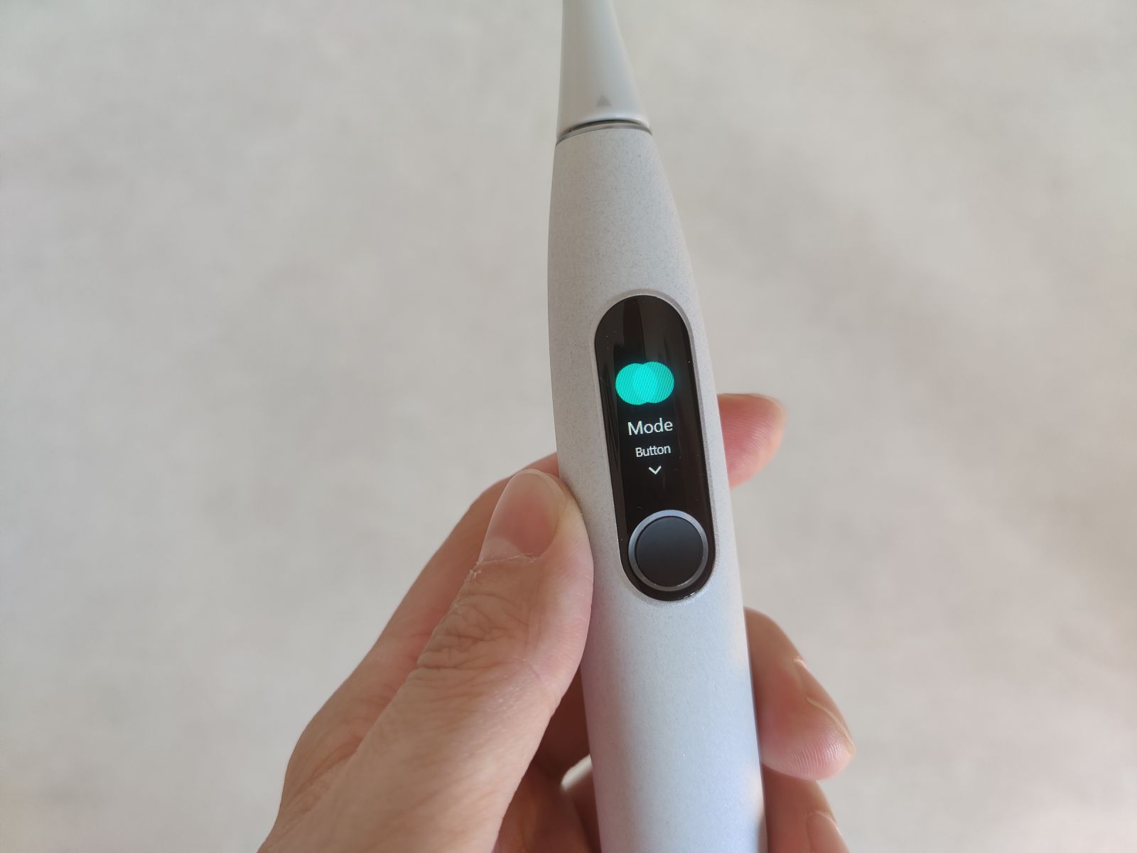 Na Oclean X Pro Elite najdemo podoben zaslon kot na Xiaomi Mi Band pametni zapestnici. Gre za barvni LCD zaslon na dotik velikosti 4x1.5 cm, ovalne oblike torej z implementiranim okroglim gumbkom na spodnji strani, ki služi kot Power/Function stikalo. Kljub dejstvu da zaslon prekriva skoraj celotno širino ščetke ne gre govoriti o prav velikem zaslonu, kar se je precej poznalo na prvi generaciji Oclean X modela, kjer je delovanje na dotik potekalo tako tako, včasih več poizkusov preden je dejansko zagrabilo. In pri Oclean X Pro Elite modelu je razlika v delovanju, natančnost, odzivnost, zanesljivost svetlobna leta pred prvim X modelom, tokrat lahko res govorimo o dobri uporabniški izkušnji tudi na tem področju.