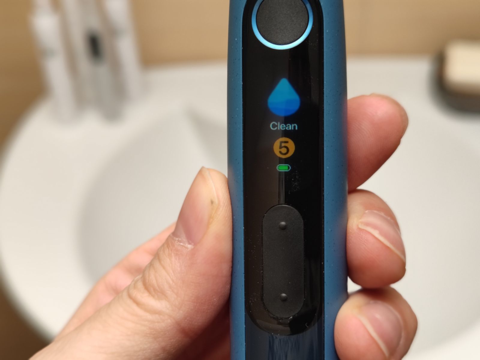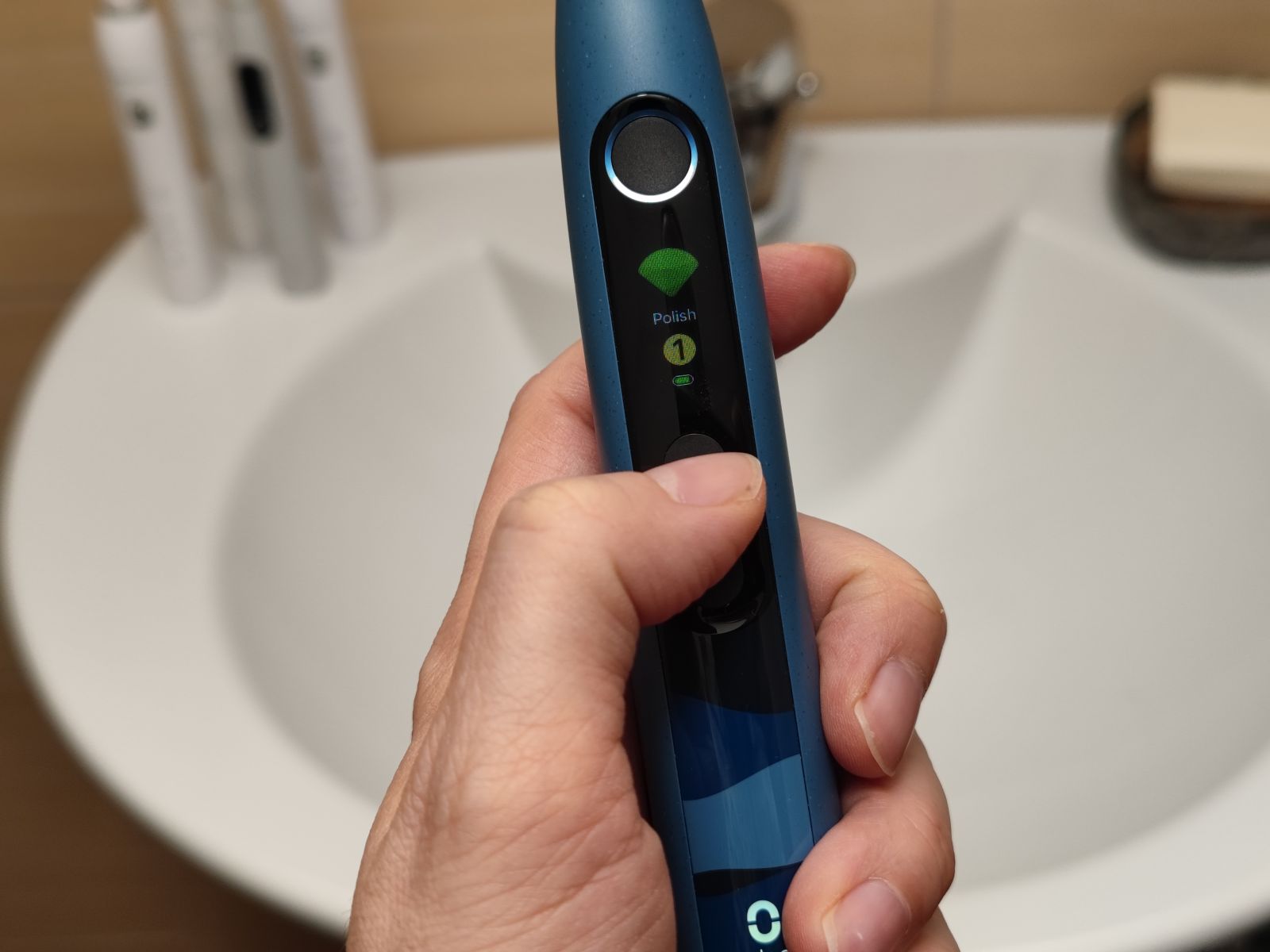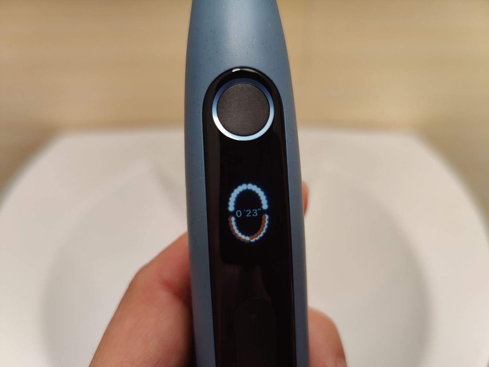 Za zagon ščetke nato le pritisnemo na okrogli gumb pod zaslonom in ščetka bo delovala v zadnjem izbranem načinu, nastavitvah.