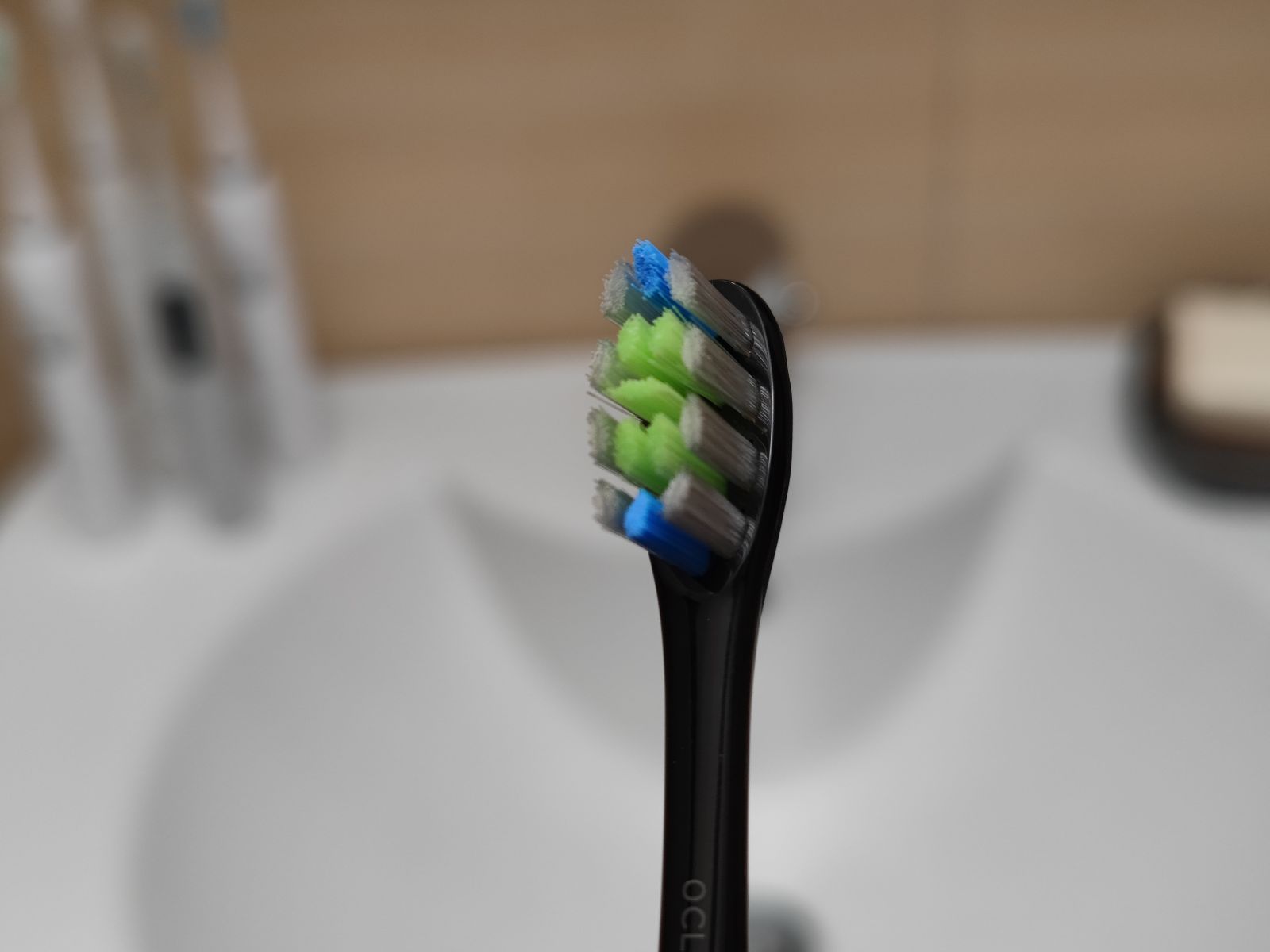Stari znanci so tudi izjemno kvalitetne DuPont glave/nastavki, ki ne zajemajo škodljivih materialov, so prijetne za ščetkanje in imajo dobro trpežnost. Oclean XS ima priložene nastavke, ki so po trdoti nekje na sredini, mogoče malenkost trši od srednje trdote, kar pa pomeni da bo učinkovitost čiščenja teoretično tudi malo višja. Pohvaliti gre še spiralno gumijasto nazobčano strgalo za jezik na zadnji strani ščetkine glave.