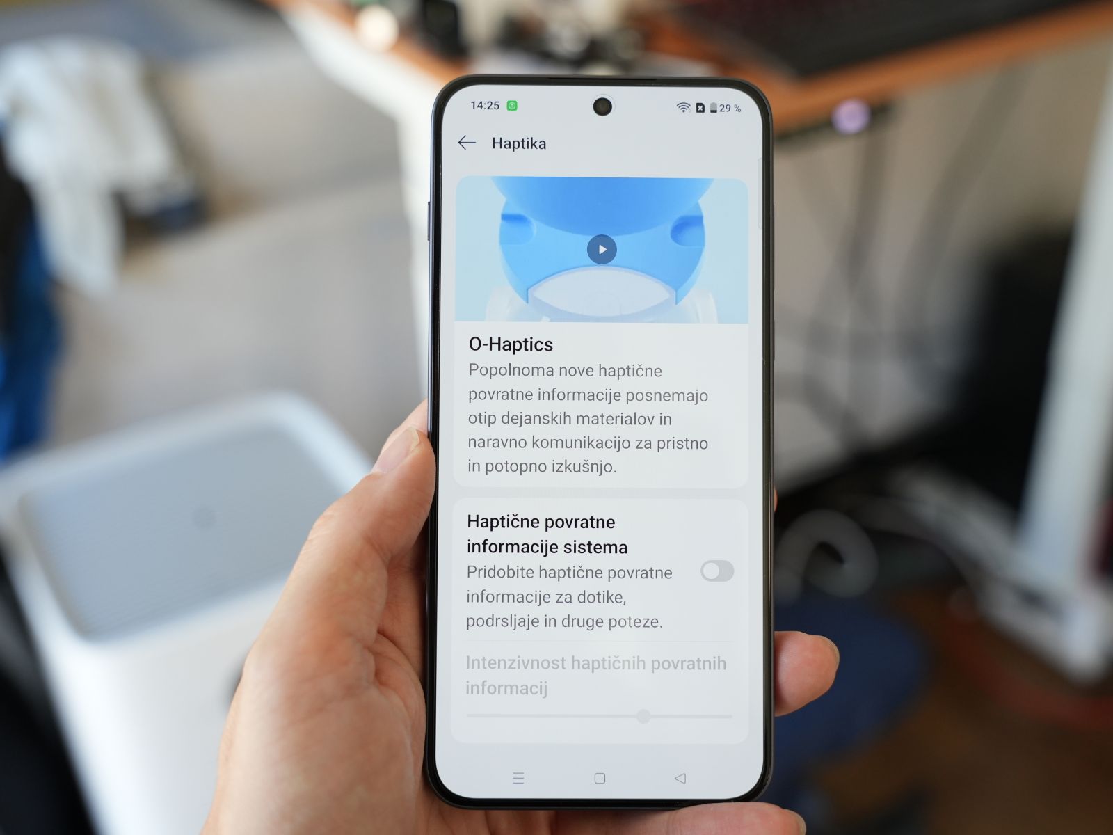 Na področju vibracijske povratne informacije (heptike) se Nord 5 izkaže z dobro kalibriranim heptičnim motorjem. Vibracije so natančne, enakomerno razporejene in prijetno čvrste – brez votlega, razpršenega občutka, ki ga najdemo pri cenejših napravah. Pri tipkanju, sistemskih gestah ali obvestilih vibracije prispevajo k občutku kakovosti, čeprav ne gre za najvišji nivo heptike, ki ga poznamo iz flagship naprav.