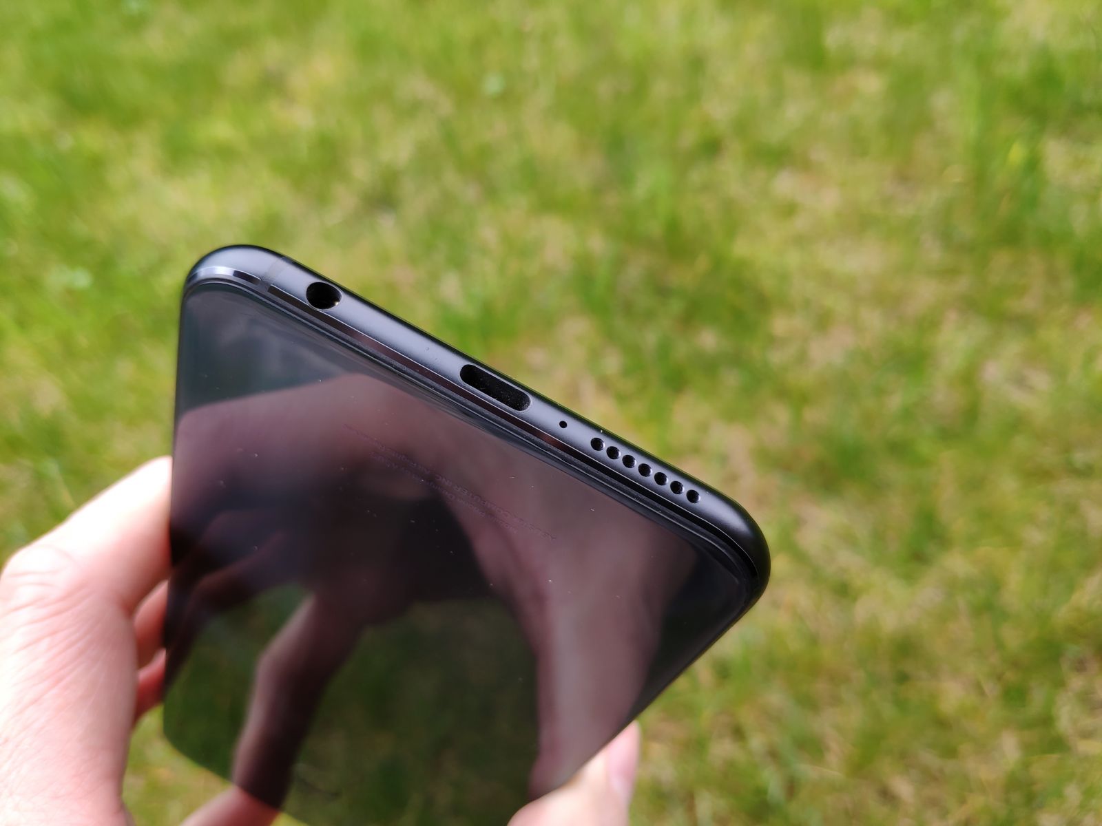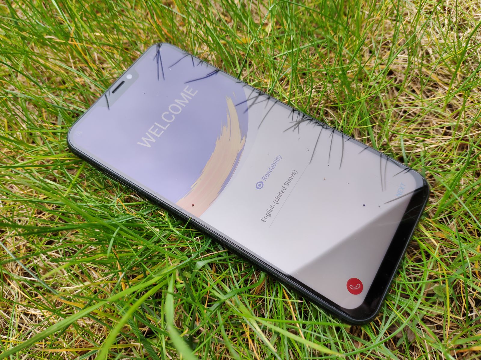 Velikosti zaslona navkljub je naprava zelo kompaktna, pri čemer pomaga tudi zareza (ang. notch) v kateri se nahajata senzor bližine in kamera. Če niste pristaš zarez jo je možno enostavno odpraviti skozi nastavitev, ki dolžino ekrana okoli zareze obarva v črno. Teža 165 gramov je ravno pravšnja za velikost telefona, ki ga je zelo zadovoljivo držati v roki. Steklena zadnja stran nosi s seboj tudi klasične pomanjkljivosti – poleg hitre vidnosti madežev telefon rad nepredvideno drsi, niti ne toliko iz roke, bolj s kovinskih in steklenih površin, tudi če so le rahlo nagnjene, najbrž zaradi modula s kamerama, ki je nekoliko izbočen. Priloženi gumijasti ovitek ta problem nevtralizira, poleg tega je steklo na obeh straneh odporno Corningovo Gorilla Glass, ki bi se moralo dobro obnesti pri padcih z višine enega metra ali manj. Zaslon je kljub Gorilla Glassu zelo občutljiv na mikroskopske praske, ki bodo za čas vklopljenega zaslona nevidne, je pa vseeno priporočljiva uporaba zaščitne folije.