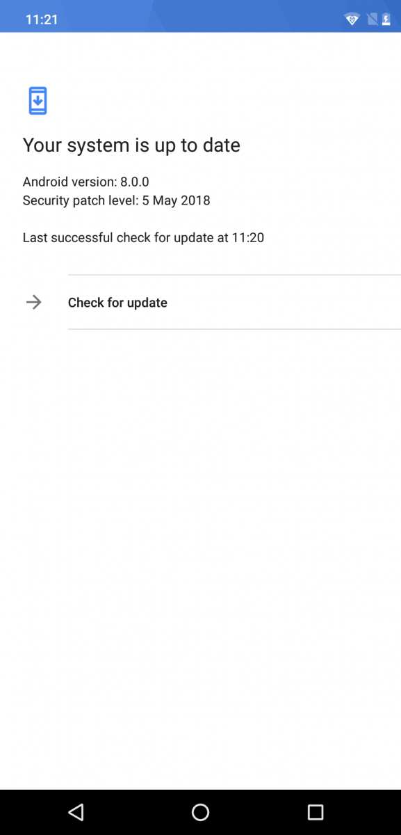 Različica operacijskega sistema Android je 8.0, ki nas ob prvem zagonu pozdravi z vmesnikom v slovenščini. Različica 8.0 sicer ni najnovejša, medtem smo dobili Android 8.1, nekateri proizvajalci pa že nadgrajujejo naprave na Android 9.0. Kot je tipično za nizkocenovne naprave, tudi Cubot ne ponuja posodobitev. Kljub temu boste med aplikacijami našli eno z imenom Wireless Update, ki vam bo preprosto javila, da je vaš sistem na najnovejši različici, enako vam bo javil sistemski pregledovalnik posodobitev. Novejše različice Androida sicer ne prinašajo opaznih sprememb v primerjavi z 8.0, bolj je zaskrbljujoče dejstvo, da bo verjetno telefon ostal na varnostni posodobitvi iz meseca maja 2018, kar predstavlja potencialno varnostno luknjo v prihodnosti.