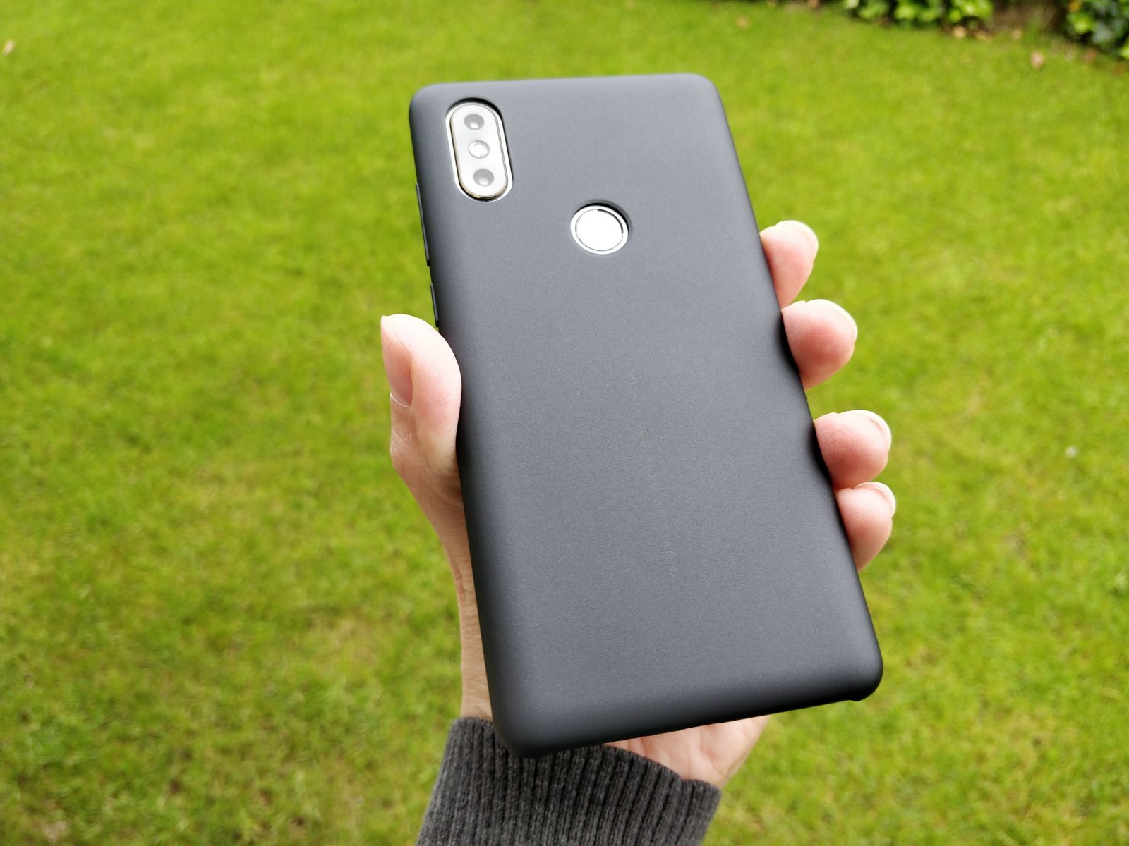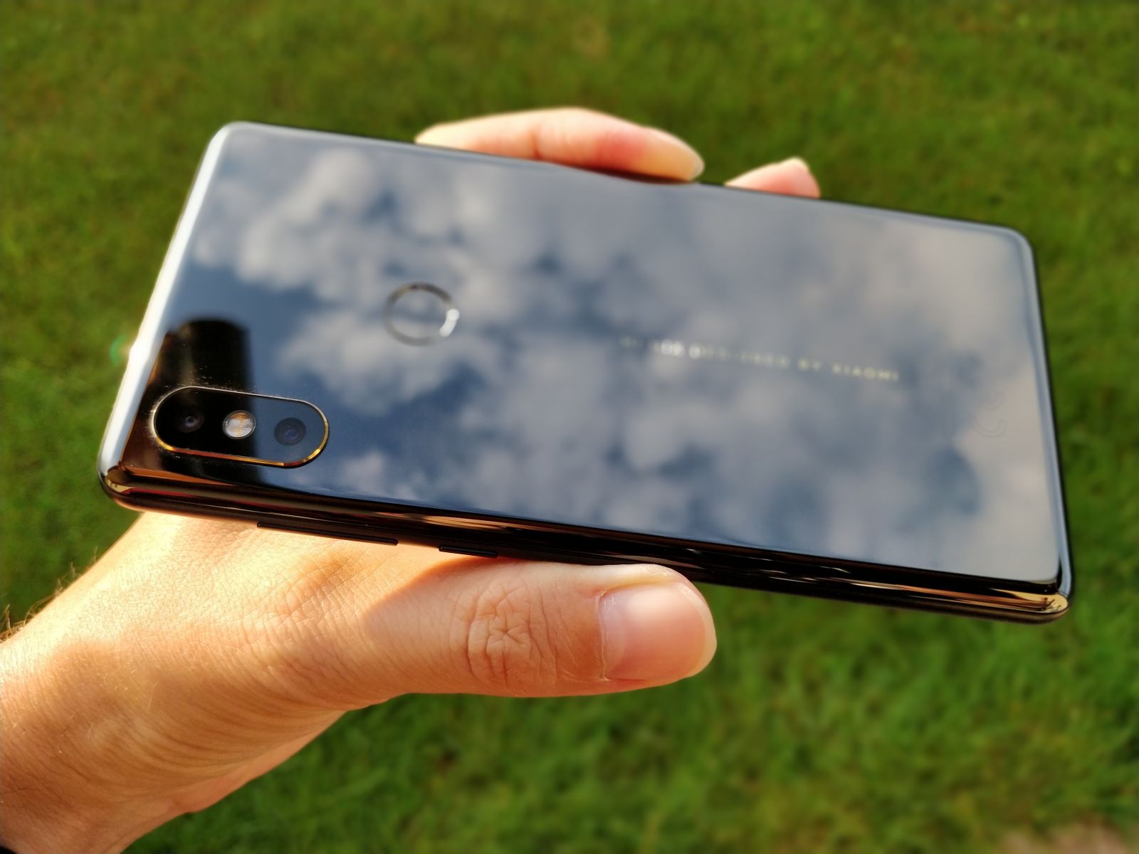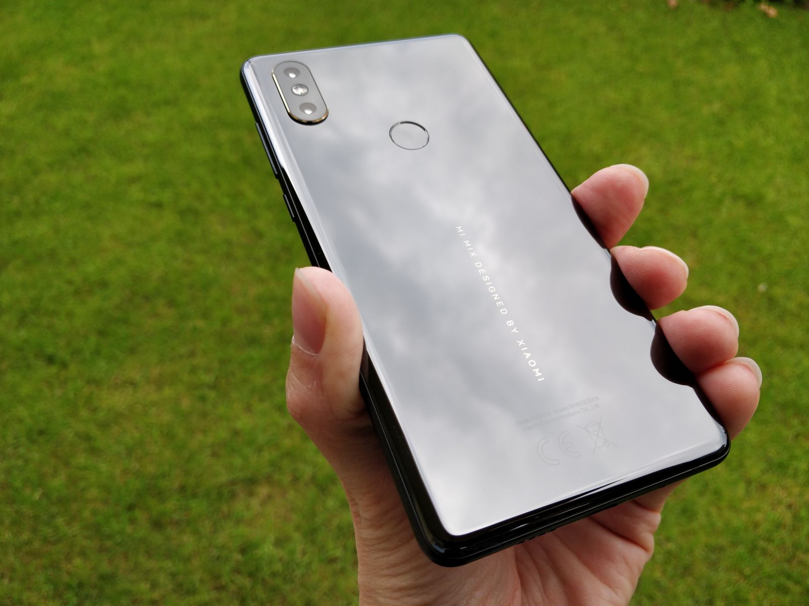 Zadnji model iz Mi Mix linije sledi trendom ter ponuja 6" brez-robi zaslon, ki pa dimenzijsko ne bistveno presega velikost navadnih, klasičnih 5.5" telefonov. Mere telefona znašajo 15.6 x 74.9 x 8.1 cm, teža pa se je tokrat zavrtela na precej opaznih 191g, kar je za tovrstne telefone nad povprečjem, dobra novica pa je, da je telefon pridobil težo na račun zadnjega, izjemno kakovostnega keramičnega dela. Telefon ima odlično ergonomijo, saj ga povprečna moška roka z lahkoto upravlja. Telefon je brez ovitka nekoliko izmuzljiv, kar se še posebej pozna, ko ga odložimo na gladko podlago, saj rad sam zdrsne. Težavo hitro odpravimo kar s priloženim ovitkom hrbtnega dela, ki je presenetljivo zelo kvalitetno izdelan in prijetno sede v roko.