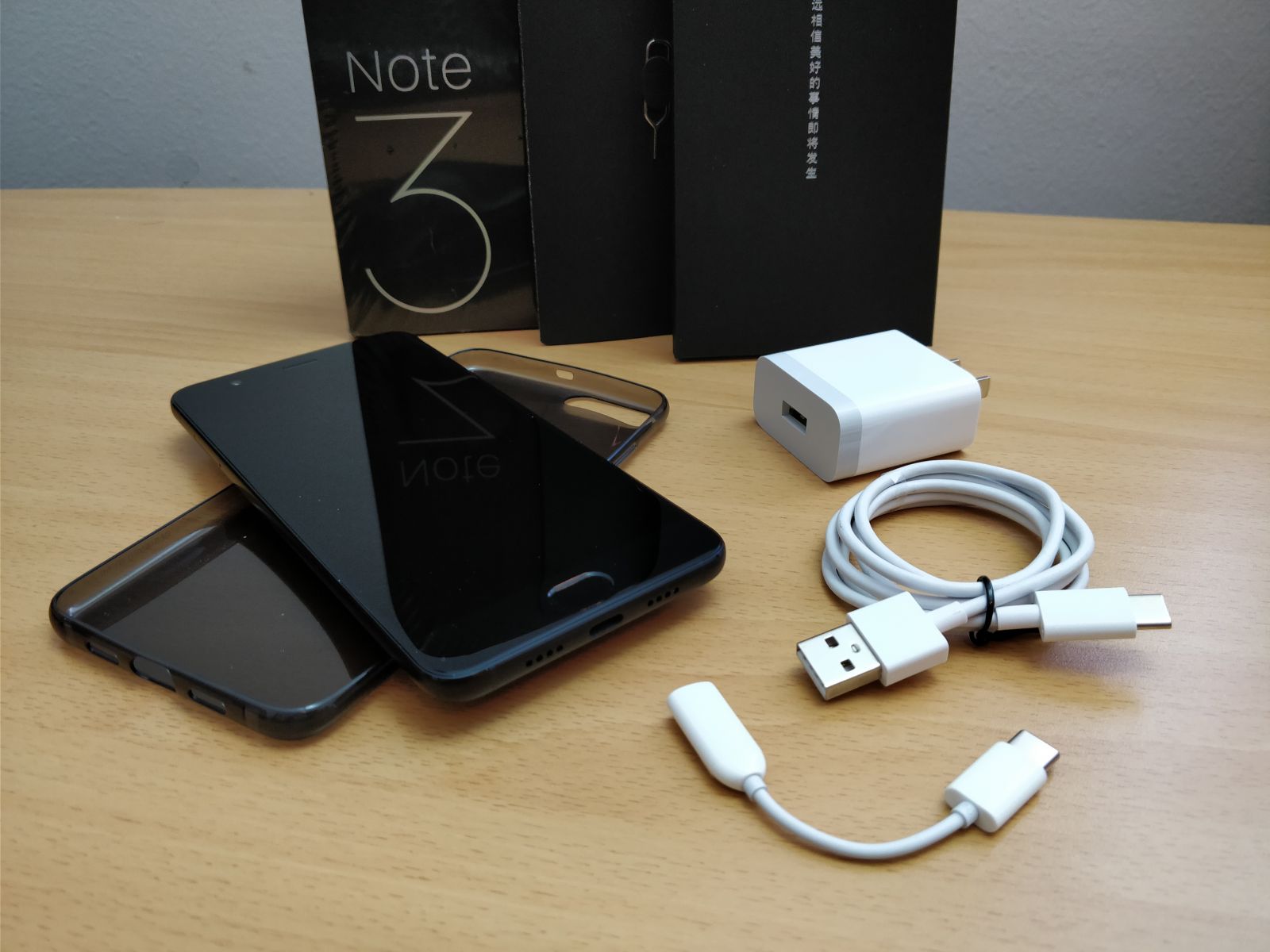 Xiaomi Mi Note 3 sodi v višji razred Xiaomi telefonov, kar je razvidno že iz elegantne, lepo dizajnirane črne škatlice, ki tako na zunaj, kot znotraj, daje vtis premium telefona. Znotraj škatlice najdemo primerno zaščiten telefon, USB C kabel, polnilec, adapter za slušalke, sponko za dostop do SIM kartice, priložen pa je tudi praktičen TPU ovitek (mešanica plastike in silikona - zelo prijeten in trdoživ material) - zadnja zaščitna stran za telefon. Skupna teža zapakiranega telefona znaša 410g.