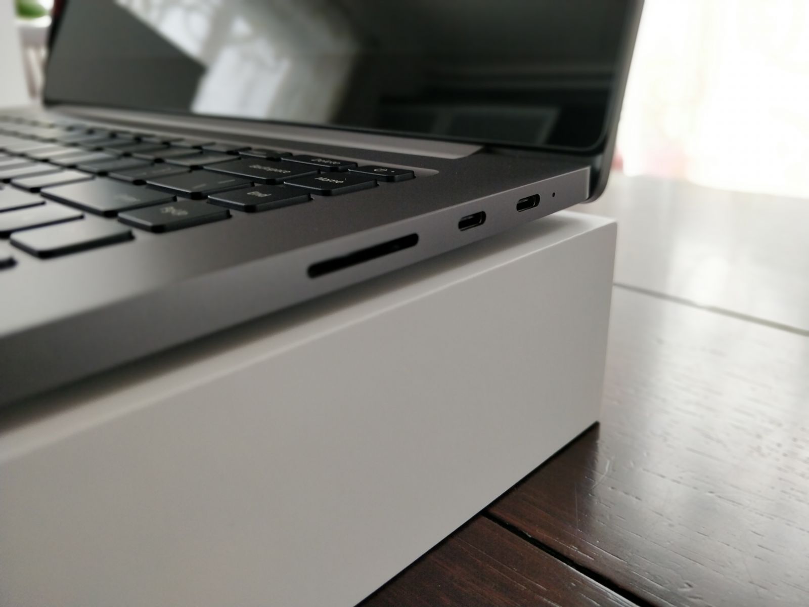 Priključkov ima prenosnik dovolj, mogoče le nekoliko zmoti, da polnjenje poteka le preko zadnjega USB-C priključka, ki je hkrati tudi DisplayPort ter počasnost SD kartice, ki je za nekoga, ki preko te opcije prenaša veliko podatkov lahko minus.