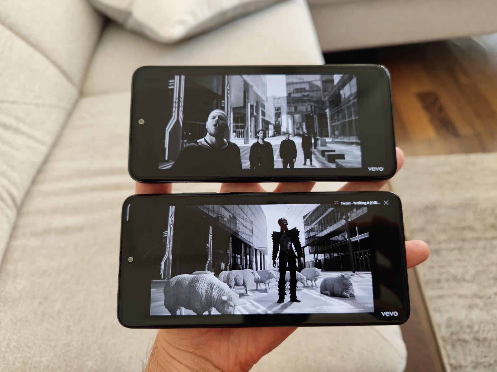 Sicer pa oba modela z enako ločljivostjo pri 1080x2400 pixlih. Kvaliteta zaslona je primerljiva, oba imata dobre kontraste, posledično dinamično sliko z dobrimi barvami, dobro berljivostjo tudi na močnejši svetlobi.
