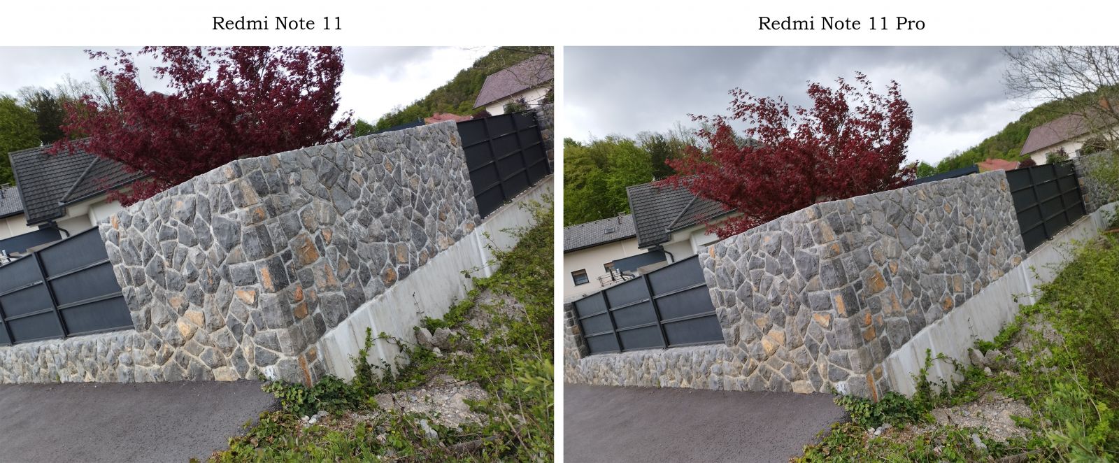Kot je razvidno iz večine fotografij v dobrih svetlobnih pogojih med Note 11 in Note 11 Pro ni velikih razlik oz. se le te pokažejo ob povečavi, kjer je Pro model z večjim senzorjem z več detajli in predvsem boljšo jasnostjo. Zaradi večjega senzorja Pro model zajame več svetlobe kar se tudi pri dnevnih fotografijah po večini kaže v nekoliko svetlejših fotografijah, kar je lahko plus in minus, imamo več detajlov a včasih fotografije delujejo malo presvetle, pride pa omenjeno zelo prav v slabših svetlobnih pogojih, kjer pa je razlika med Note 11 in Note 11 Pro očitno v prid Pro modela.