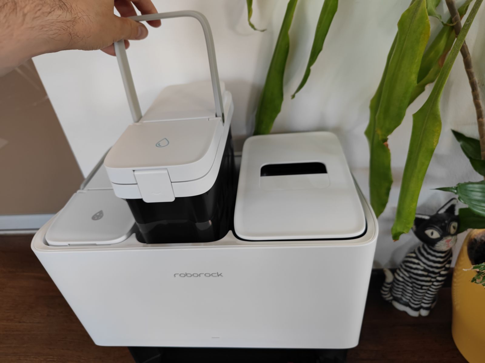 Predvsem pa je pri flagship Roborock modelih potrebno omeniti Ultra samočistilno postajo, ki kljub kar nekaj konkurenčnim modelom še vedno velja kot ena absolutno najboljših.Je izjemno napredna, učinkovita, funkcionalna, praktična in tudi pri dnevni uporabi sesalnika res uporabna. Prinaša pa vsaj nekaj tedensko avtonomno delovanje sesalnika, brez potrebe po kakršnemkoli posredovanju uporabnika tako v primeru suhega kot mokrega čiščenja. V praksi to pomeni, da posodico napolnimo s čisto vodo, vstavimo vrečko za smeti in kljub redni uporabi sesalnika za mesec dni pozabimo na čiščenje in vzdrževanje. Šele nekje po mesecu (odvisno seveda od pogostosti čiščenja stanovanja) dni bomo odlili umazano vodo ter natočili svežo. Po slabih dveh mesecih bomo zamenjali vrečko za smeti. Sesalnik ne potrebuje ročnega čiščenja uporabnika, za vse poskrbi samočistilna postaja!. Seveda pa je priporočljivo na nekaj mesecev malo očistiti tako samočistilno postajo kot sesalnik.