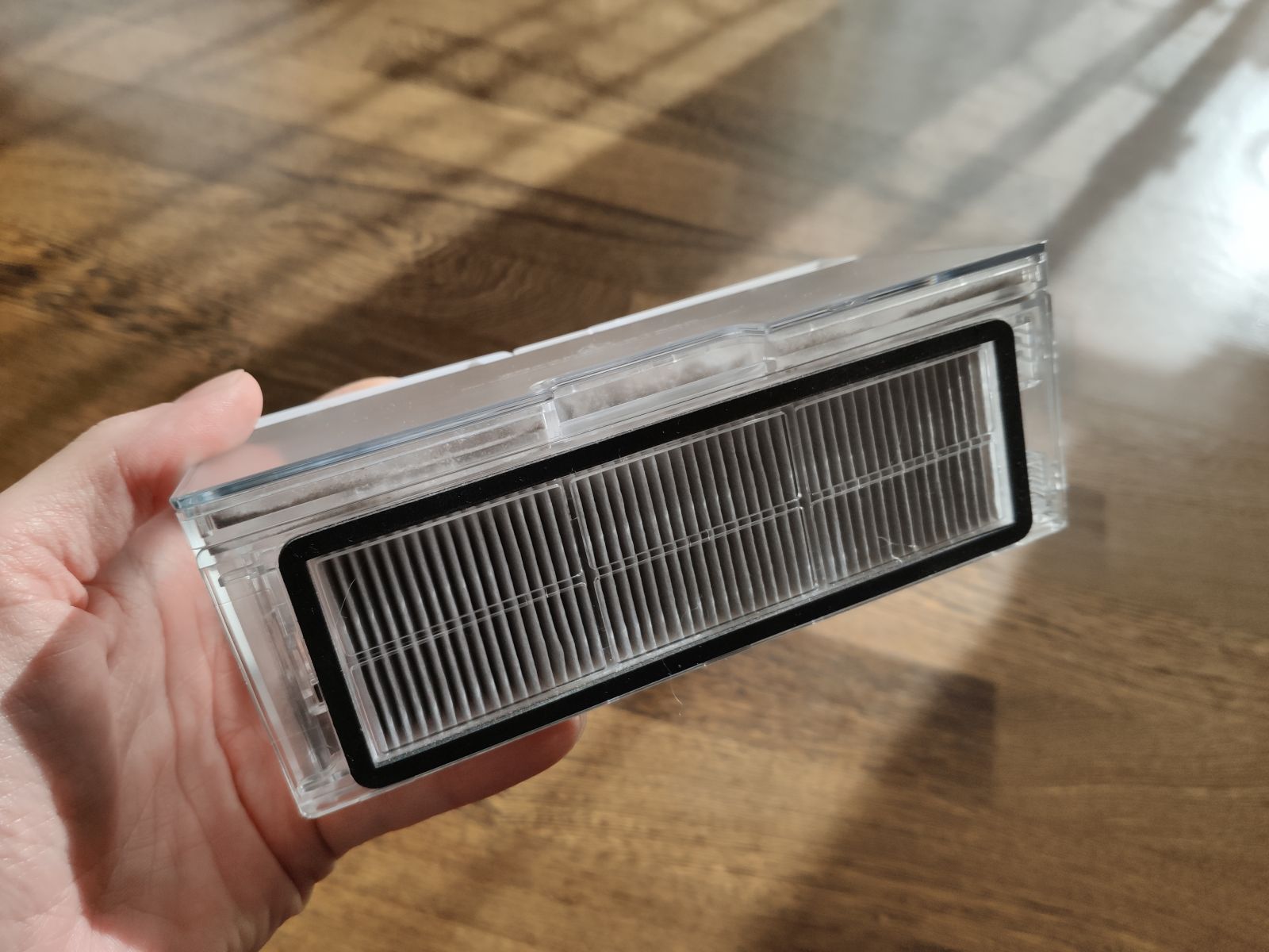 Tudi Roborock S6, je kot večina vrhunskih modelov, opremljen z najučinkovitejšim filtrirnim sistemom, s HEPA filtrom, ki zajame do 99,9% mikro prahu, kar zmanjšuje tudi možnost alergijskih bolezni. Filter v praksi zdrži kar nekaj časa, priporočljivo ga je redno čistiti, dobra novica je, da je HEPA filter pralen in ga lahko enostavno sčistimo pod vodo, le poskrbimo, da je pred naslednjo uporabo filter ni več vlažen.