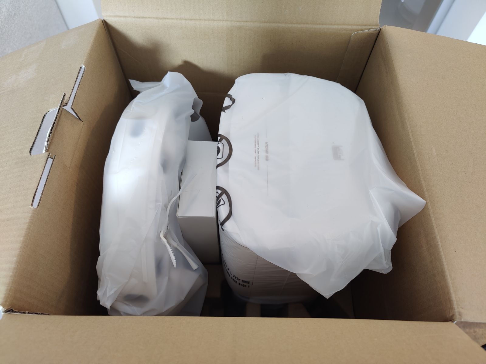 Xiaomi Viomi S9 pri svojem najboljšem in najdražjem modelu navdušuje že z embalažo, saj že na prvi vtis sesalnik deluje nekoliko bolj premijsko, preprosto in nevpadljivo klasično kartonasto škatlo namreč zamenjuje z elegantno belo, grafično opremljeno embalažo, ki deluje bolj vredno višje cene, manj pa bo po godu ekološko bolj usmerjenim kupcem, ki so cenili minimalistični kartonasti zavoj.