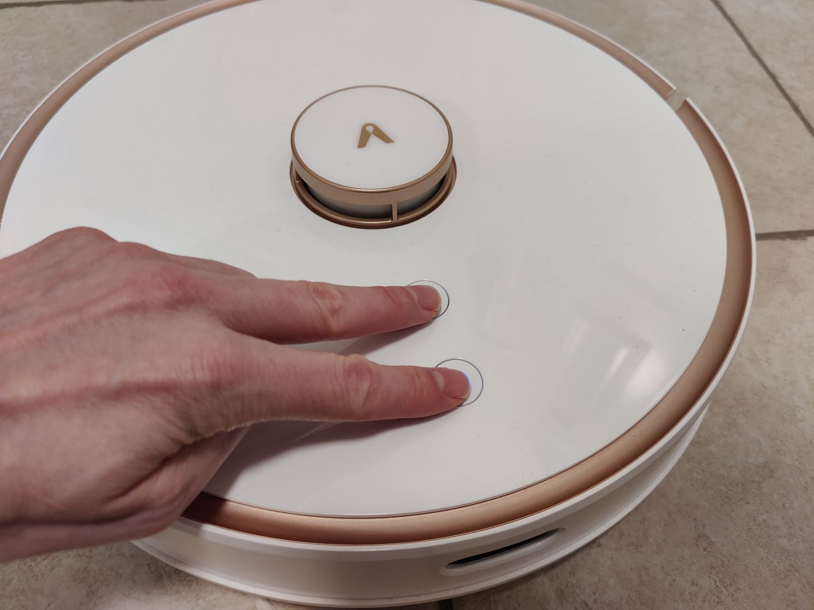 Za zagon čiščenja imamo na voljo dve opciji. Sesalnik lahko zaženemo preko fizičnega gumba na sesalniku (kjer bo sam pričel ustrezno čiščenje glede na vstavljeno posodico) ali pa preko aplikacije. V aplikaciji lahko izbiramo med tremi načini čiščenja: