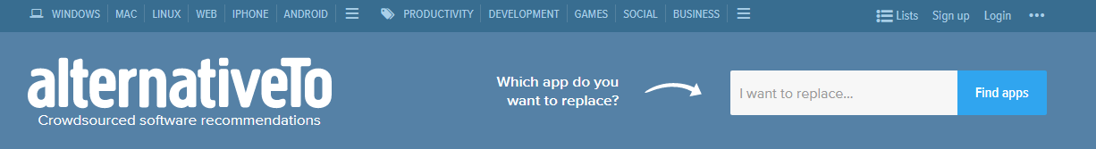 Ste že kdaj iskali oz. se spraševali, če obstaja alternativa določenemu programu, pa naj si gre za brezplačno opcijo ali bolj kvalitetno storitev? Spletna stran alternativeto.net nudi prav slednje. V iskalnik vnesemo ime programa oz. storitve, platforma pa nam bo navedla različne alternative, ki lahko zamenjajo našo trenutno rešitev. Spletna stran nam ponudi tudi kratke opise alternativnih rešitev, z navedeno podporo različnim platformam in operacijskim sistemom. Vsako alternativo pa lahko uporabniki tudi ocenimo, ter tako pomagamo novim uporabnikom pri iskanju najbolj primernih alternativnih rešitev in izbiri pravega orodja.