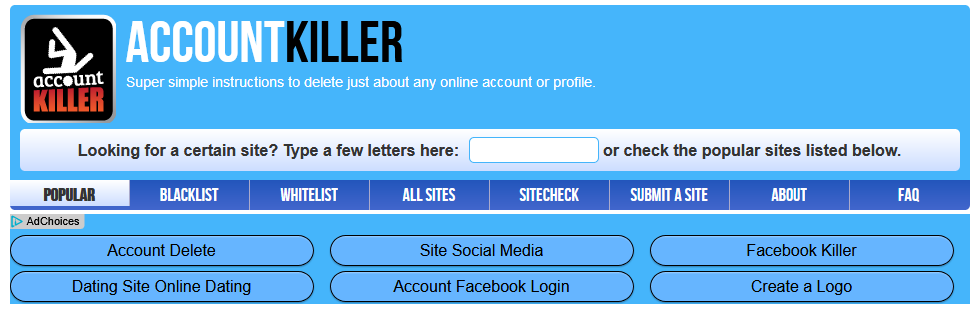 Takšne in drugačne storitve, spletne strani, socialna omrežja, aplikacije in naročnine so današnje dni nekaj povsem običajnega in verjetno ni uporabnika, ki ne bi bil naročen oz. prijavljen vsaj na eno izmed njih. In ni malo takšnih, ki so so prijavljeni na mnogo njih. Sčasoma pa se pojavi želja po ukinitvi določenega računa, ki ga morebiti več ne uporabljamo ali pa se ga enostavno želimo znebiti. In na tem mestu včasih nastopi težava, saj ukinitev računa ni niti približno tako enostavna kot njegovo kreiranje. Accountkiller.com na enem mestu zajema jasna navodila ter oceno, kako zahtevno bo zbrisati določen račun. V njegovi bazi najdemo navodila za praktično vse popularne storitve, od Facebook, Skype, Twitter, Spotify, Yahoo, Pinterest, Google računov, sortiranih po različnih sklopih ali abecednem seznamu, kjer najdemo tisoče različnih storitev in računov.