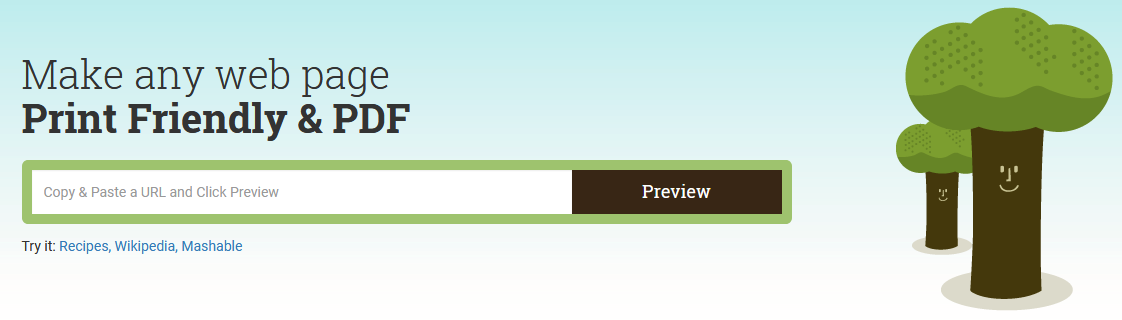 Verjetno je že marsikdo ugotovil, da tiskanje direktno iz spletnih strani včasih ne poteka tako kot bi si zamislili ali želeli. Velikokrat je na tistki strani, poleg željene vsebine prisotna še množica dodatnih elementov, ki jih ne potrebujemo/želimo (razne povezave, oglasi, slike in drugi filtri strani). Spletna stran printfriendly.com nam ob vpisu določene spletne strani, ki jo želimo natistniti, ponudi zgenerirano stran pripravljeno za prijazen tisk, pri kateri pa lahko sami, le s klikom na posamezen element, le tega odstranimo iz strani in tiska. Urejeno stran po naših željah lahko natisnemo, shranimo kot pdf datoteko ali pošljemo po emailu.